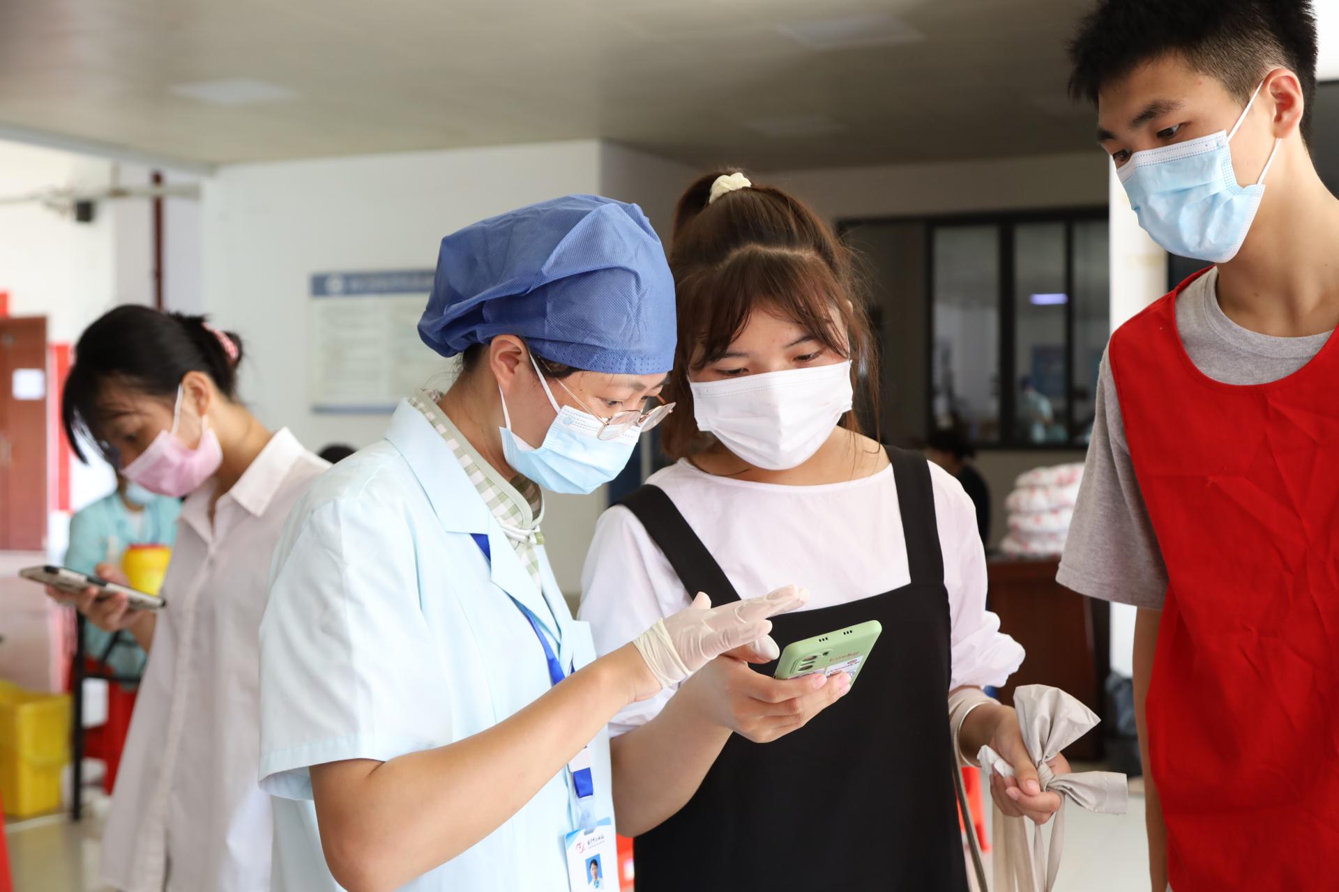 医护人员查验献血者身份信息