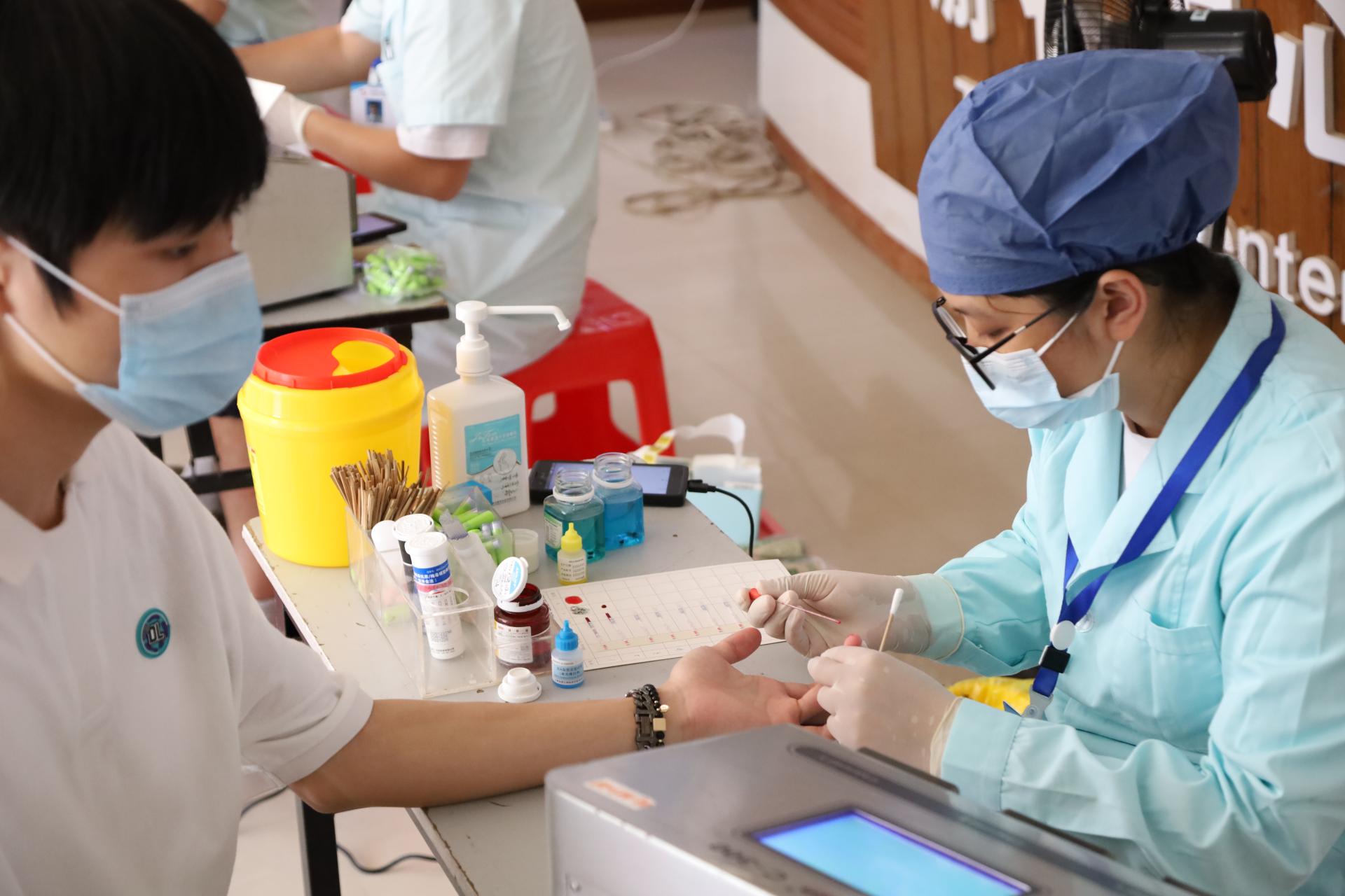 正在采血的同学