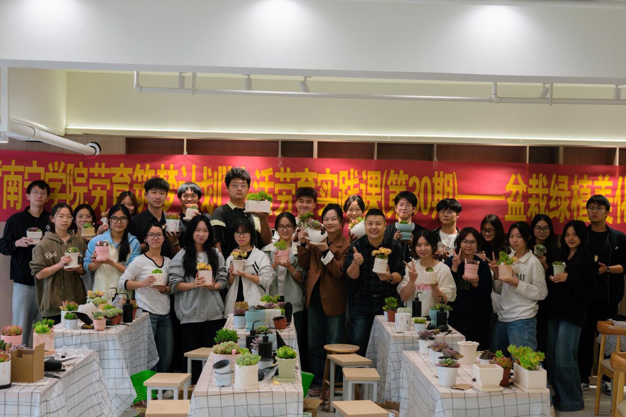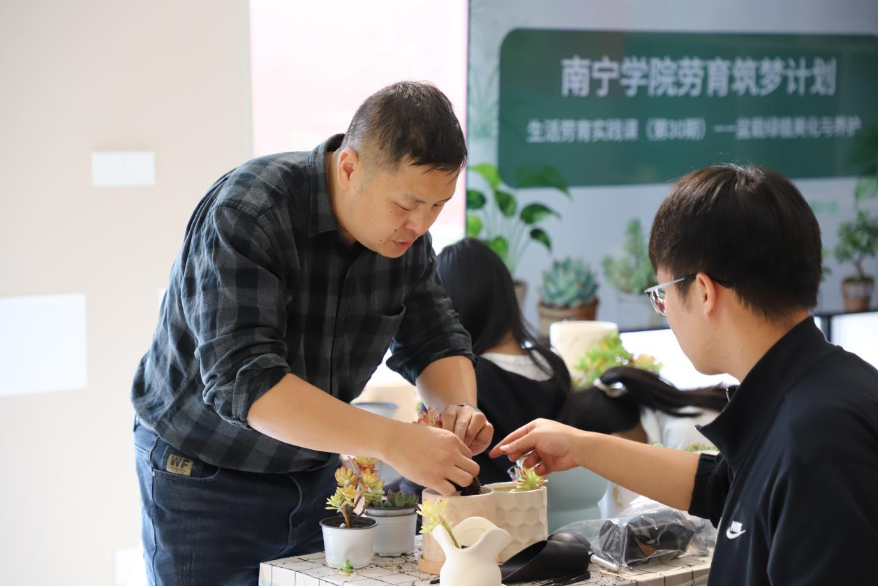 为落实 “五育并举” 教育方针,丰富生活劳育实践形式,11 月 21 日下午,南宁学院劳育筑梦计划”生活劳育实践课(第30期)——盆栽绿植美化与养护活动顺利举办。南宁学院学生工作处副处长田爽、数字经济学院中层副职领导韦丹出席活动,与同学们共同体验劳动乐趣,感悟绿植养护中的责任与成长。