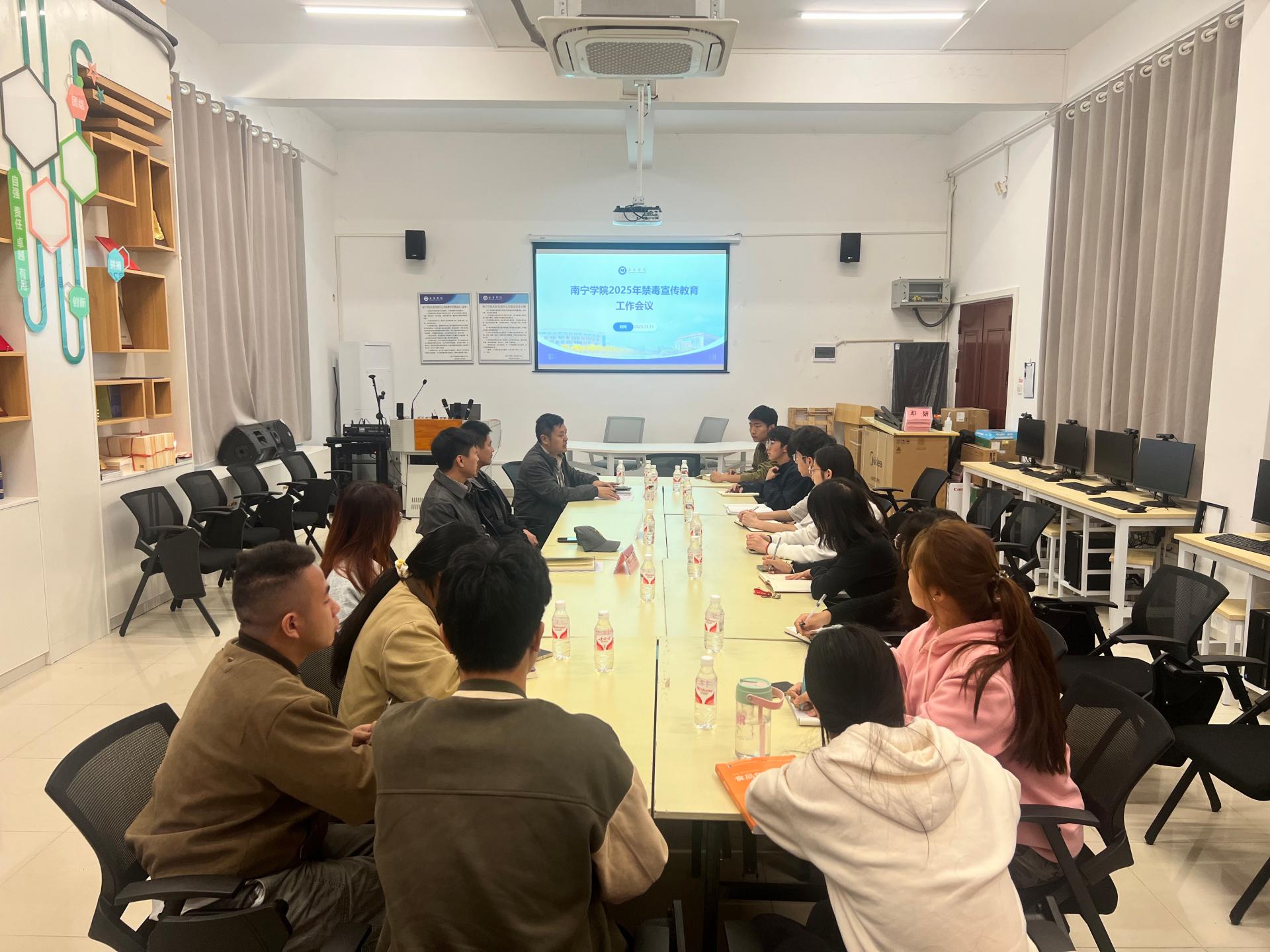 为深入贯彻落实国家关于毒品预防教育工作的决策部署,全面推动大学生毒品预防教育向纵深发展,11月13日,学生工作处与邕宁公安分局禁毒大队在活动中心102会议室联合召开2025年禁毒宣传教育工作会议。邕宁公安分局禁毒大队范彬彬警官、学生工作处副处长田爽、学生科宁浩老师及各二级学院学生会主席共同出席了本次会议。会议由田爽老师主持。