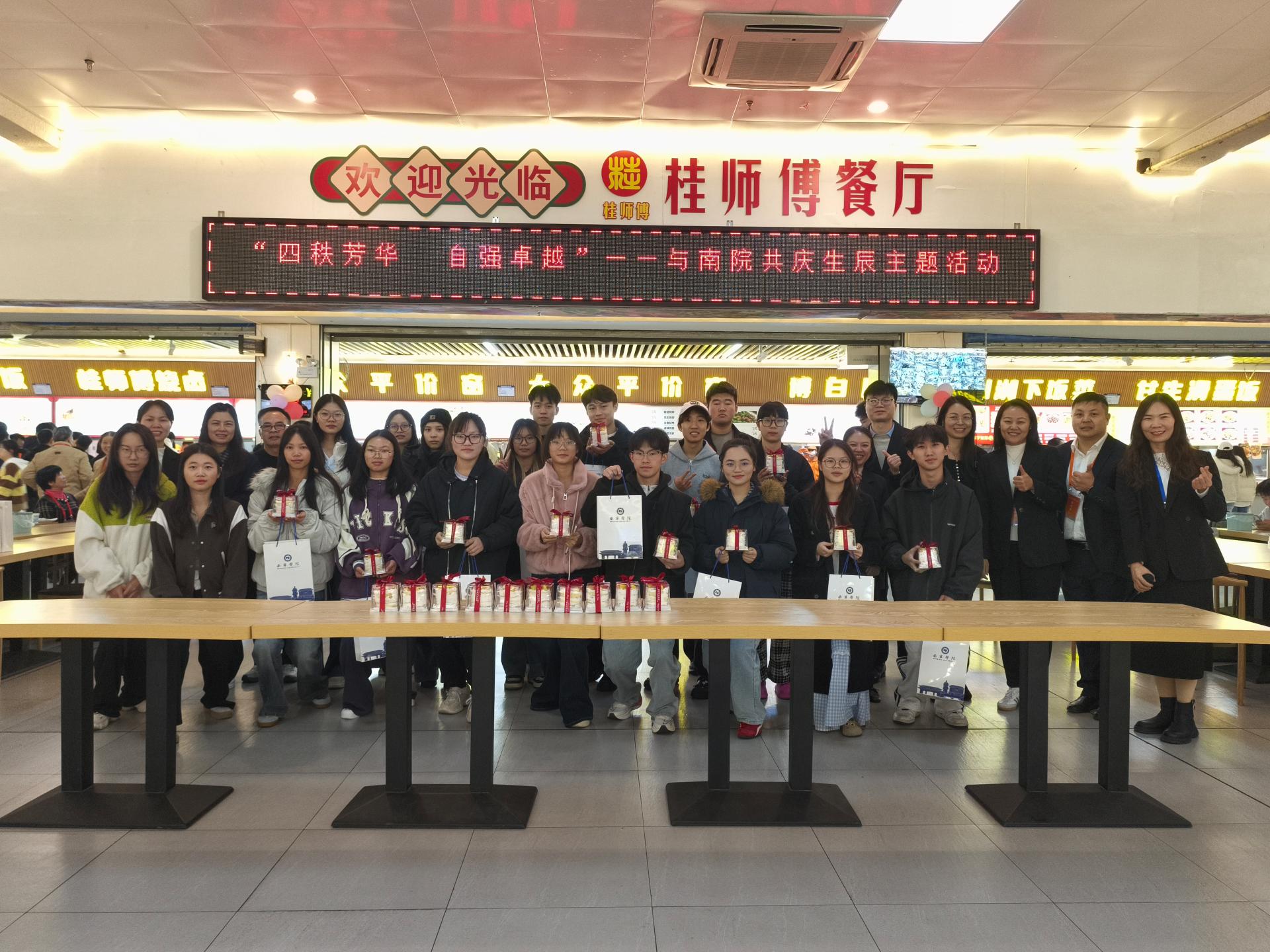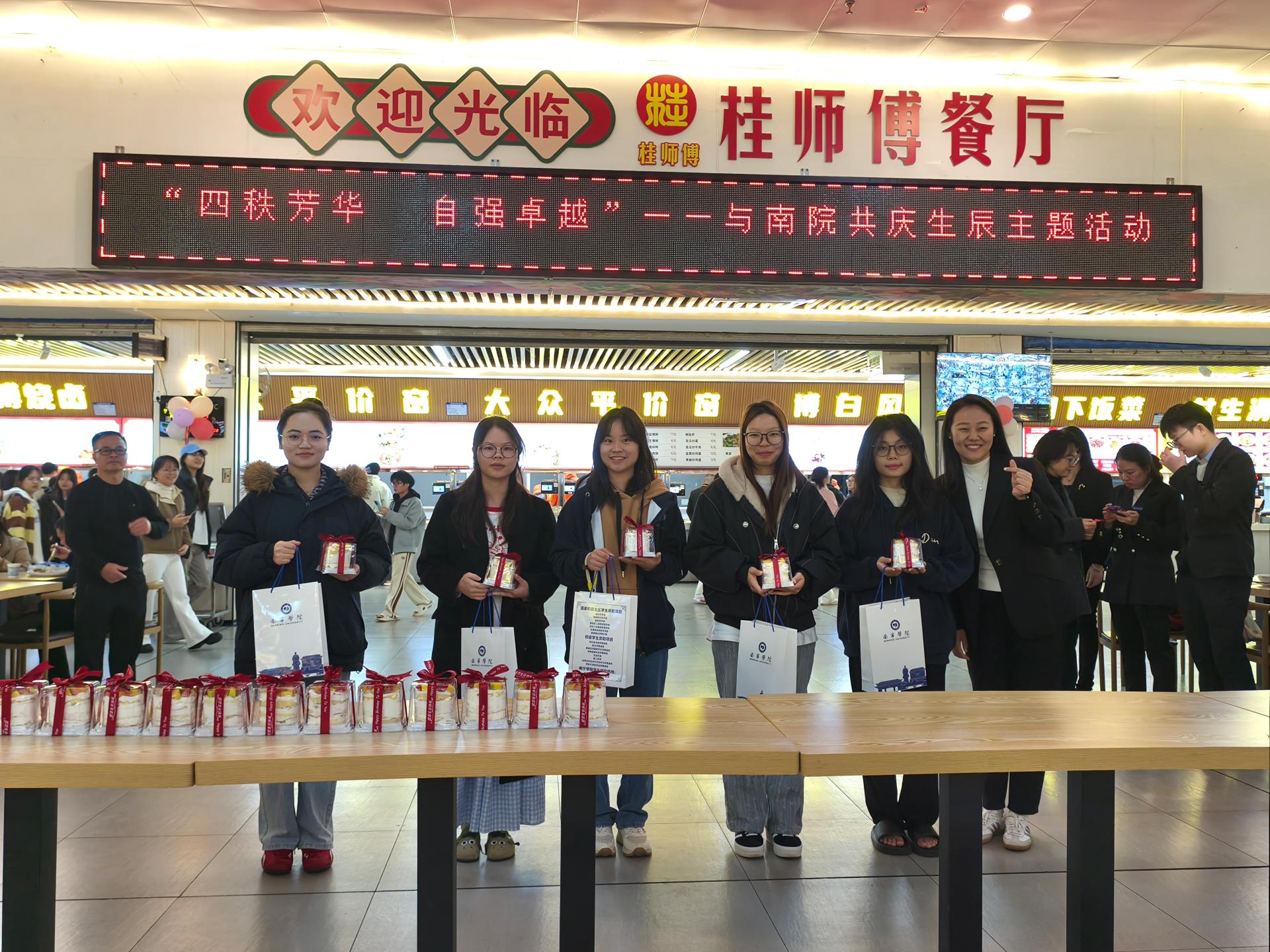 四秩普芳华,祝福暖心田。12月27日,南宁学院在一食堂3楼桂师傅餐厅举办了一场别开生面的“‘四秩芳华 自强卓越’——学子与南院共庆生辰”主题活动。32名与校庆日同生日的在校学子,与学校共同庆祝,在温情满满的仪式中,见证了个人成长与学校发展的同频共振,展现了南宁学院深厚的育人情怀。